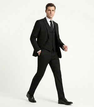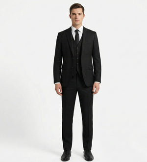 Body Copy: Define your presence with the Ultimate Jet Black 3-Piece Suit. Crafted from our deepest black Polyviscose fabric (#1c1b1b), this suit is the definition of sophistication and authority.